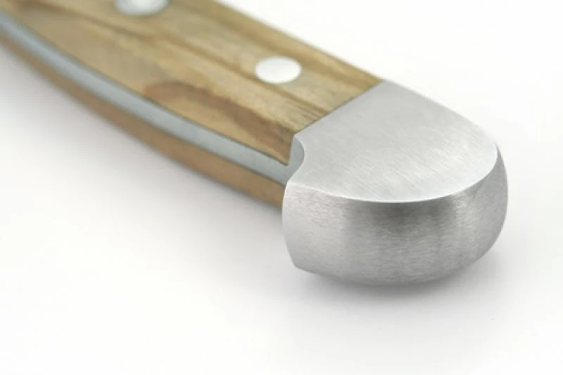 Die Griffschalen bestehen aus bis zu 500 Jahre altem und ausgesuchtem Olivenholz, welches sehr hart, witterungsfest, stark gemasert und dadurch besonders elegant ist.
